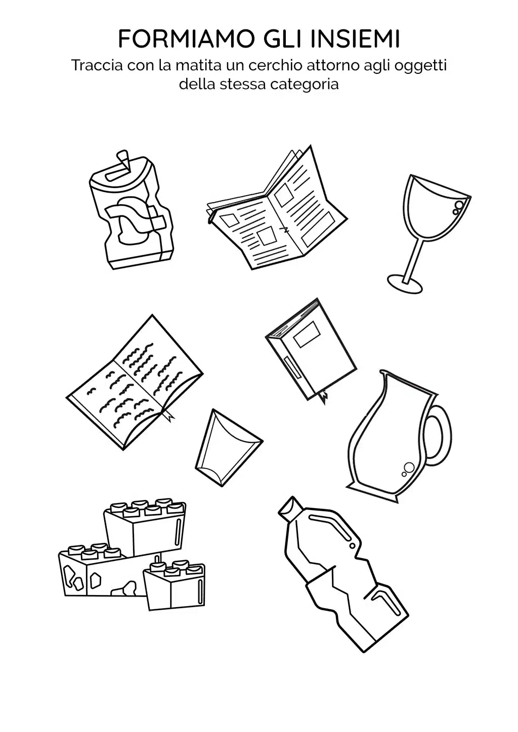 Ti divertirai a scoprire e cerchiare oggetti della stessa categoria come libri, bicchieri o blocchi di costruzioni, migliorando il tuo apprendimento attraverso il gioco.