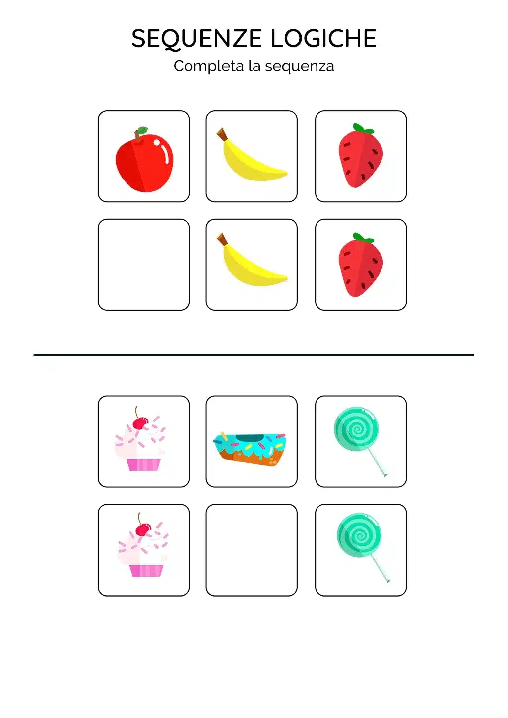 Cosa imparerai con la Scheda didattica Sequenze Logiche da 5 anni in su - Frutto e dolce mancante?