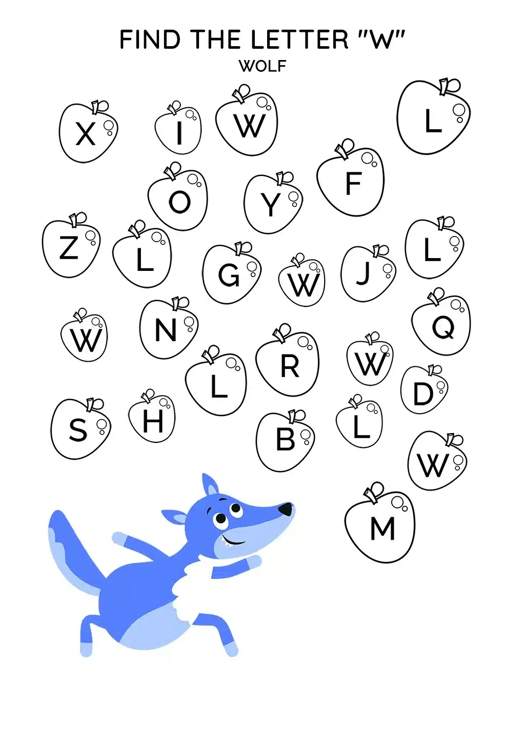 The purpose of this engaging activity is to help your child identify and become familiar with the letter "W". Through this exploration, they will link the letter "W" to a wolf, strengthening their understanding of the alphabet and its application in forming words.