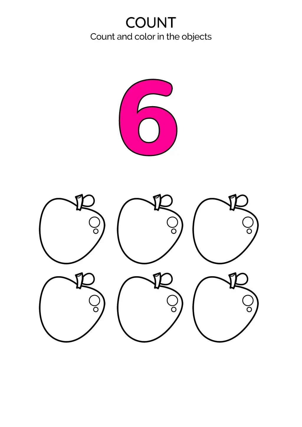 This exciting worksheet is designed to strengthen counting skills and enhance coloring abilities, revolving around the number '6' and six apples.