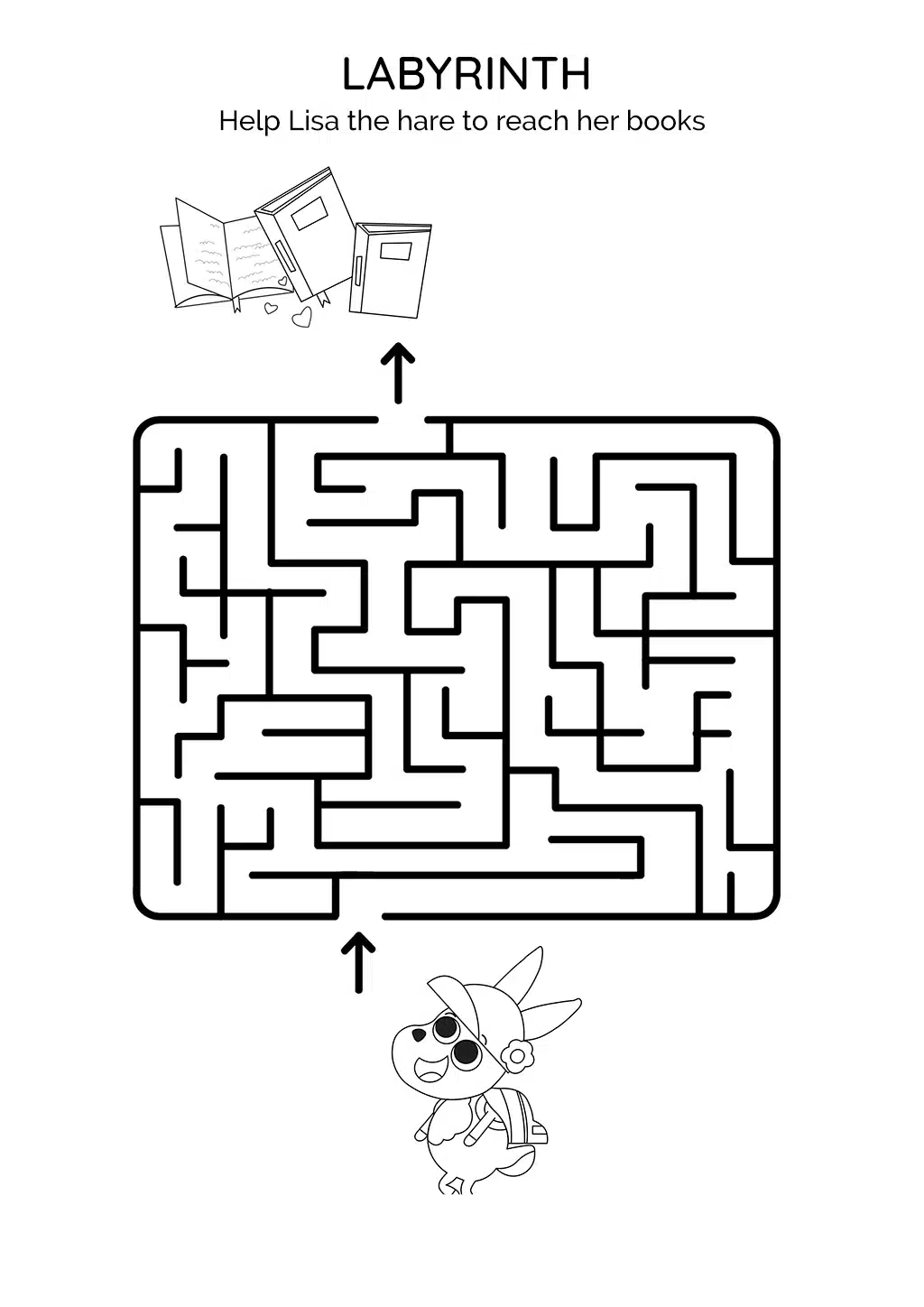Develop your child's visuospatial skills as they assist Lisa the Bunny in navigating the labyrinth to reach her beloved books.