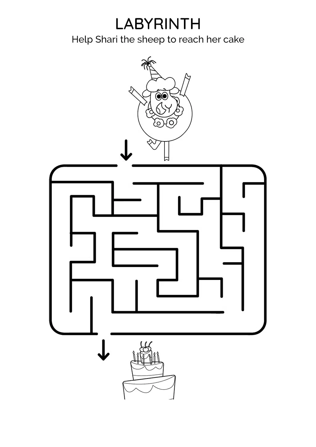In this worksheet, children are tasked with guiding Shari the Sheep through a maze to find her cake, thereby improving their visuospatial skills.