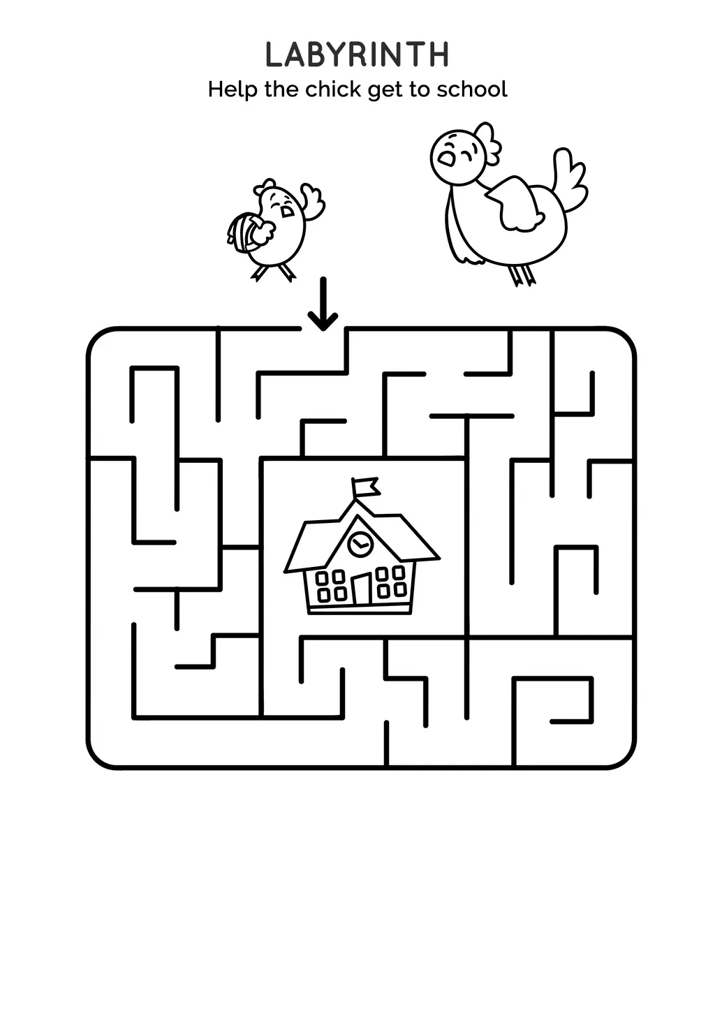 Assist the chick in navigating through the maze to reach its destination by finding the correct path.