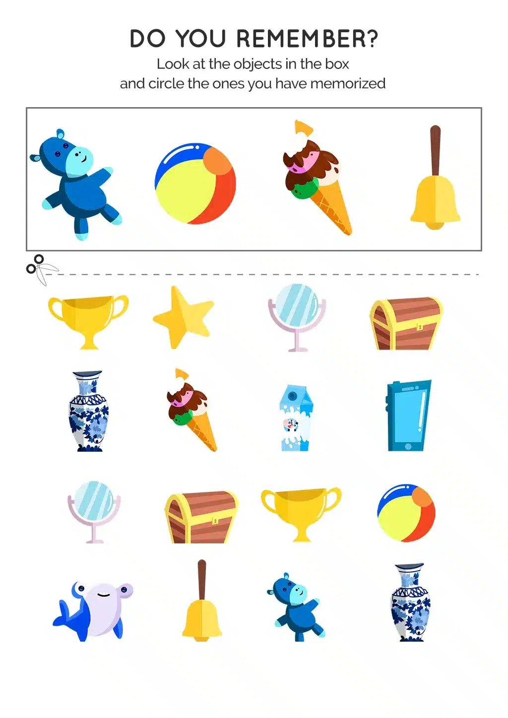 In this engaging activity, children will enhance their memory and observation skills by circling the objects they remember from the box.