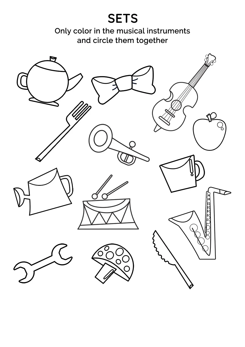 Through this engaging activity, children learn about sets while enhancing their recognition and grouping skills focused on musical instruments.