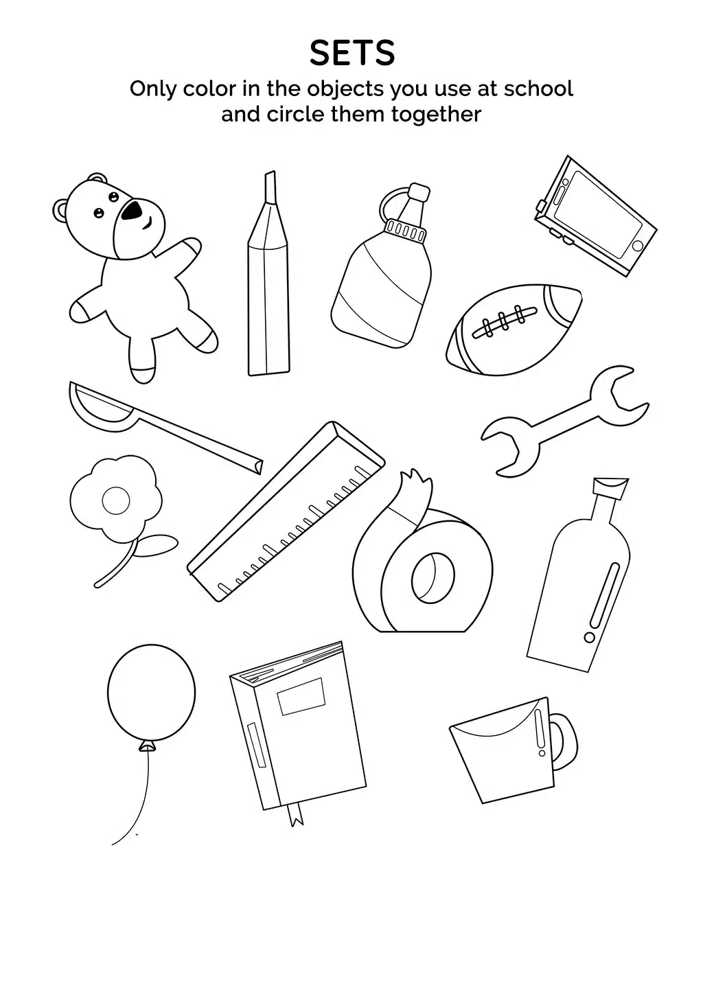 What will your child acquire from 'Sets Educational Worksheet for 6-Year-Olds - School Items'?