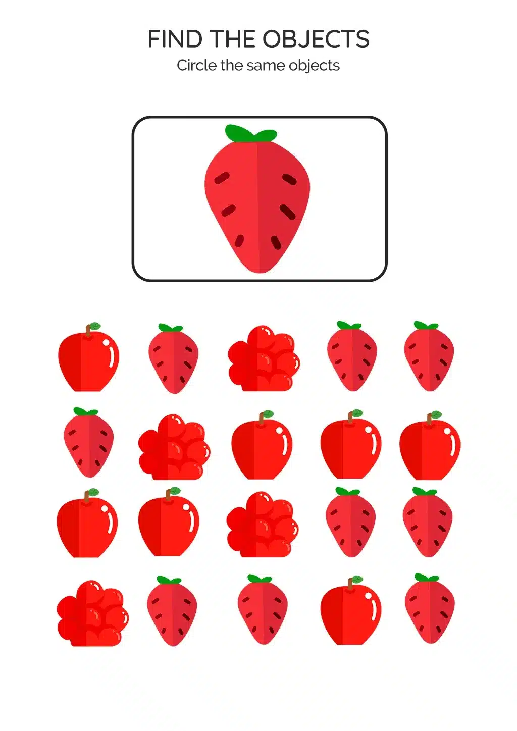 Sharpen Your Skills: Identify and Circle Strawberries Among the Red Fruits!