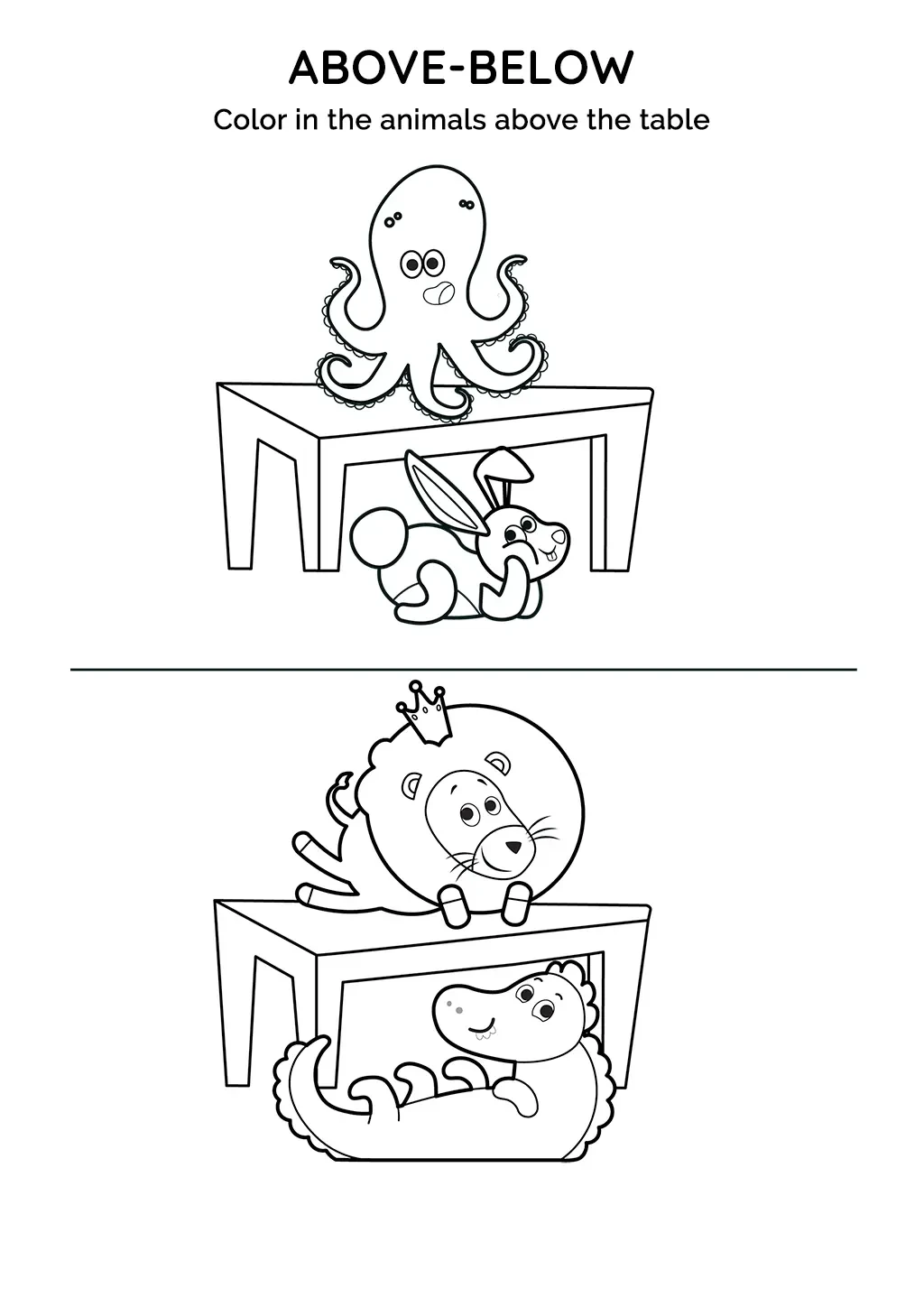 This card consists of a creative visual-spatial activity that asks your child to color the animals that are positioned above the table. It's an exciting way to help your child understand spatial concepts.